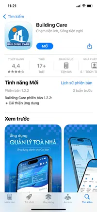 Cư dân tiến hành tải và cài đặt App “Building Care” trên kho ứng dụng Google Play (Android) hoặc App Store (IOS):