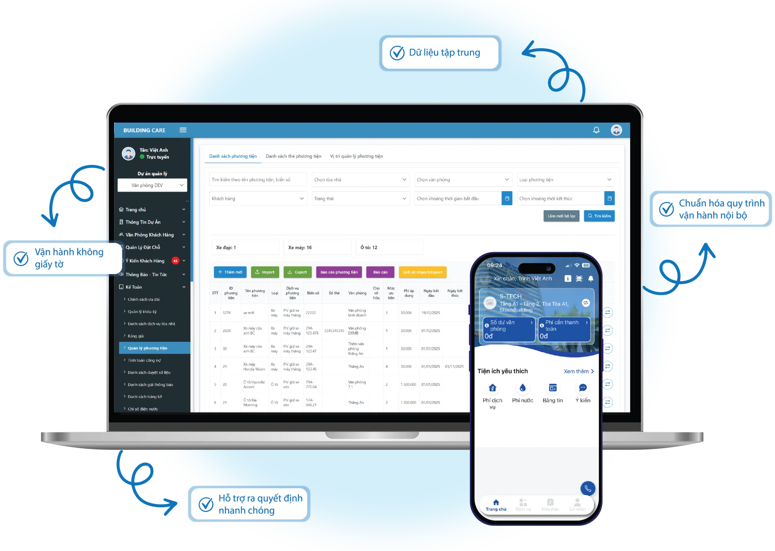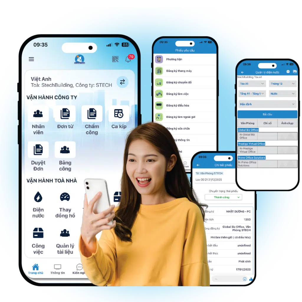 Nền tảng quản lý hiện đại giúp chuẩn hóa nghiệp vụ, tối ưu chi phí vận hành và gia tăng giá trị khai thác cho toàn bộ tòa nhà văn phòng.